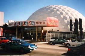 Not far from the other theaters, but on Sunset Boulevards, the Cinerama Dome plays first-run movies in its 900-seat auditorium; the screen, designed for Cinerama, is very curved.
