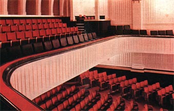 Derrière la caisse, au premier étage, se trouvait un foyer et la salle 1. Très longue, elle offrait 600 fauteuils et un écran de dix mètres de base.