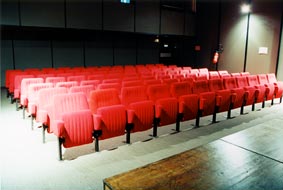La salle 1 (ci-dessous), avec ses 84 fauteuils-club rouges et son écran de sept mètres de base, est accueillante. Elle possède une estrade.