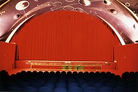 La grande vedette de ce nouveau complexe est la salle 1, qui correspond à la salle 1 du Gaumont Sud, amputée de sa partie arrière. Le faux plafond a été cassé pour libérer de la hauteur, on peut de nouveau voir les arches; le plafond est peint dans les mêmes motifs que la façade, et quelques planètes sont en relief; on pense au Grand Rex; mais ça ne vieillira pas aussi bien. On a également amputé les côtés de la salle pour ménager des sorties aux nouvelles salles (dommage, ça casse le volume).La salle est plutôt grande, elle possède 520 fauteuils, et un très bel écran légèrement courbe de 15m sur 7: l'image sera plus haute en 1.85 qu'en scope; la totalité de l'écran sera utilisée lors des projections en 70mm, avec un défaut non négligeable: les arches dissimulent les coins supérieurs de l'image; pas franchement gênant, mais extrêmement bizarre.