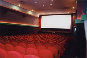 La salle 1 (ci-dessous), très sympathique avec son mélange de rouge et de bleu, possède 420 fauteuils, fortement gradinés, et un écran de dix mètres. Le son est Dolby SRD et DTS.