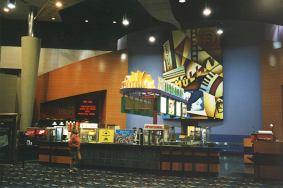 The usual question: "What makes this multiplex different from the others?" - Well, among our concession stands, we have a real cafe; and we are the largest all-THX movie theater in the United States...Twenty-five auditoriums, all with the THX label! This theater owns 25 times more THX auditoriums than all Paris (in theaters open to the public)! The proof than THX still is a major player in movie theaters. All auditoriums (for a total of 5,500 seats), located on the same level, have stadium seating and digital sound. The two largest (theaters 1 and 13) are identical; they have 525 seats, and the screens are about 80ft wide. The screens in all other auditoriums are 30 to 65 feet wide, and have ratios of 1.85; 65ft-screens are about as high as the screens in the largest auditoriums; a widescreen movie will be very nice, whereas the picture of a 1.85 movie will be really big.